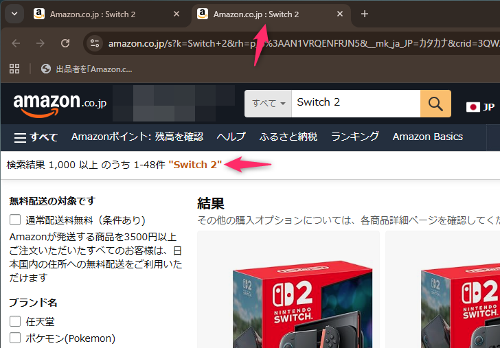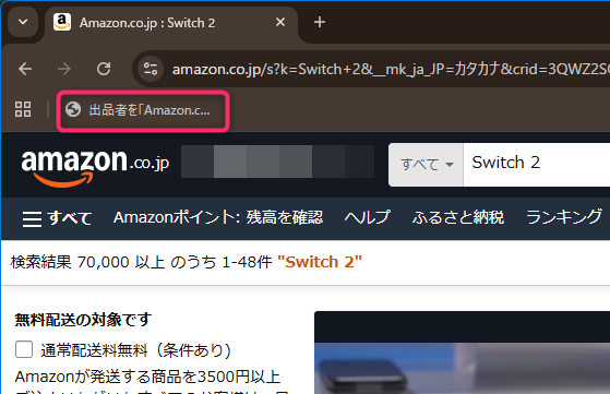 別タブが開き「出品者 Amazon.co.jpのみ」にした検索結果が表示されます