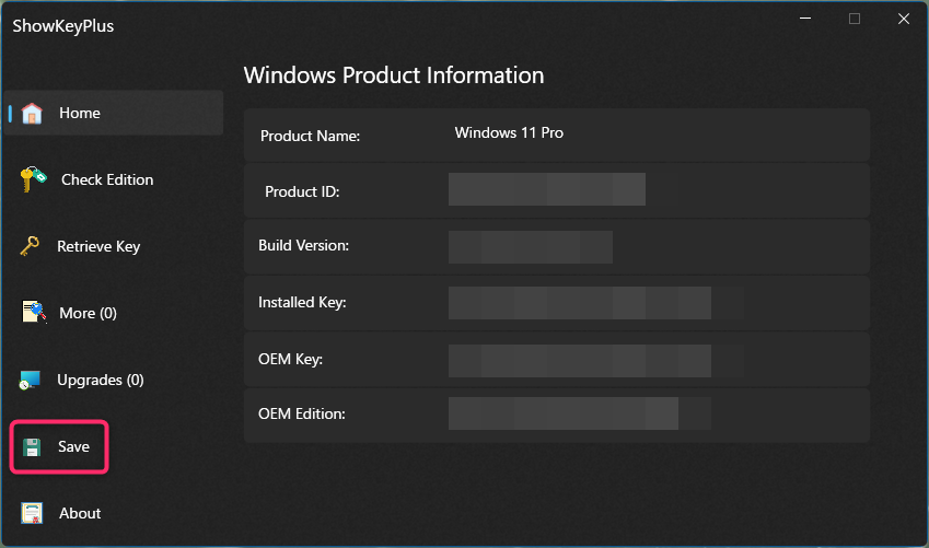 「ShowKeyPlus」を起動→「Save」ボタン→テキストファイルを保存