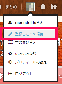 - 右上のアイコンをクリック→[登録した本の編集]を選択