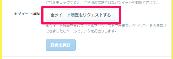 - 下の方にある[全ツイート履歴をリクエストする]ボタンを選択します