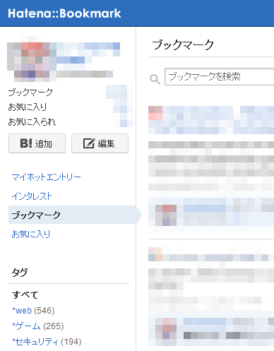 | [-あとで先に] | あとですぐ見たいもの 携帯からブックマークしたもの(適切なコメント・タグすら後回しにしたいのでこれだけ付ける) |