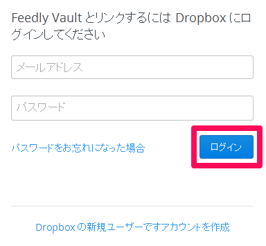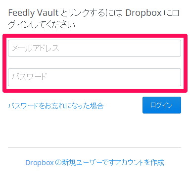 - Dropboxに登録しているID(メールアドレス)とパスワードを入力