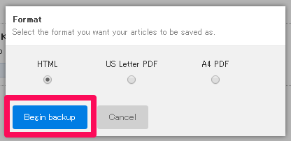 - 「Begin backup」を選択