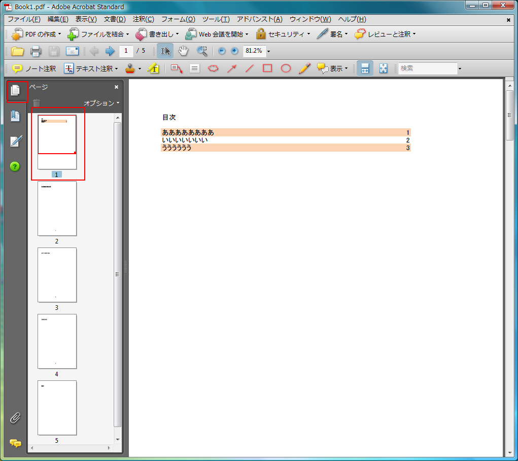 - サムネイルを表示して、表紙・目次となるページを選択します。