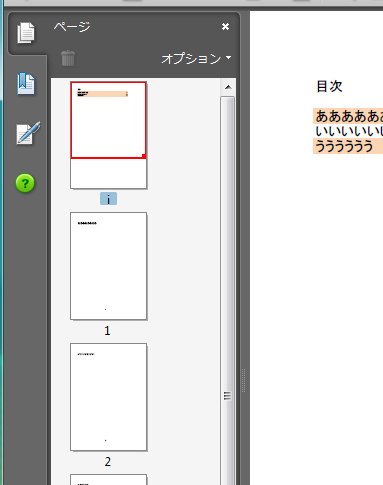 - 以下の様に、目次のページと中身のページが別な書式で1からカウントされるようになります。