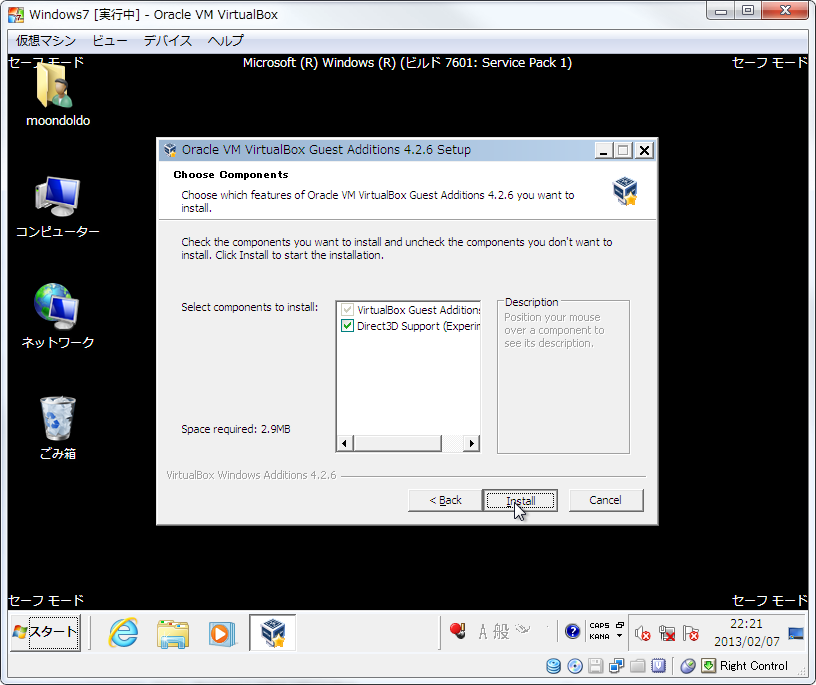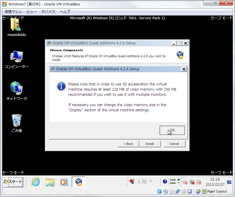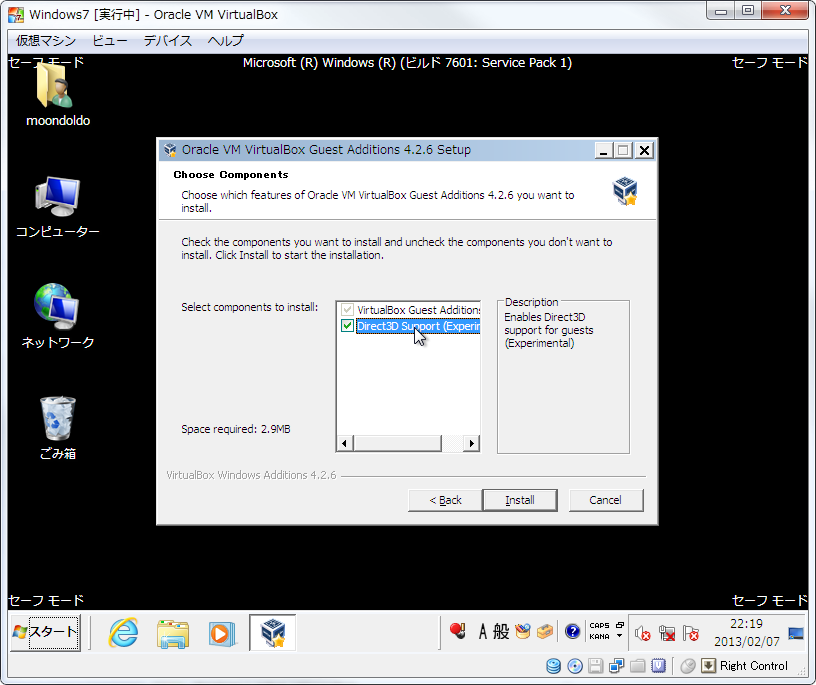 仮想環境のWindows7でDirect3DとAero(WDDM)を有効にする†