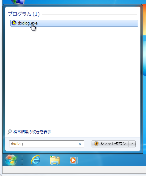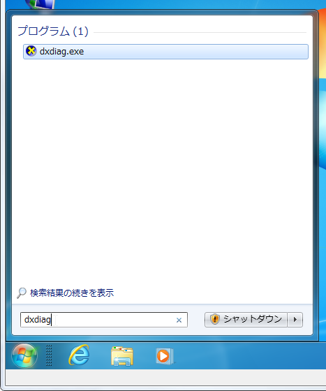 - [プログラムとファイルの検索] に [dxdiag] と入力します。
