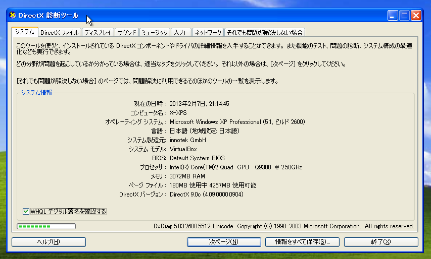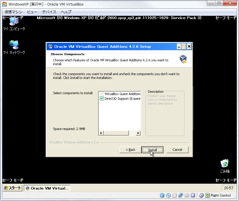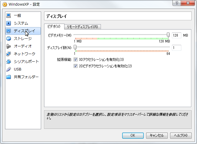 仮想環境のWindowsXPでDirect3Dを有効にする†