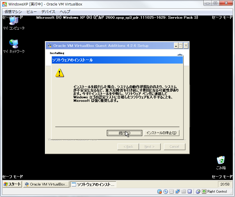 - VirtualBoxの仮想環境にWindowsXPをインストールします。