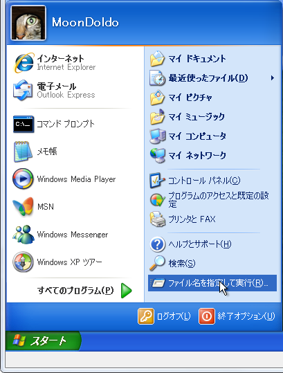 - [ファイル名を指定して実行(R)...] をクリックします。