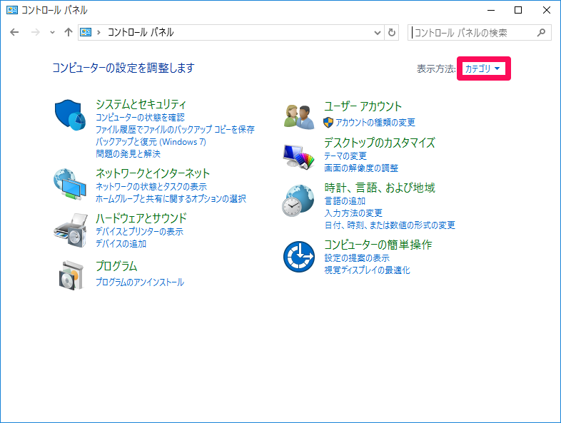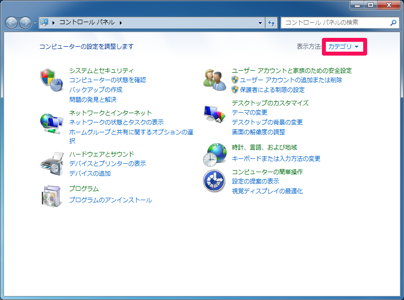 コントロールパネル(カテゴリ表示)†