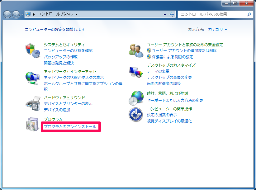- [プログラムのアンインストール]リンクを選択します