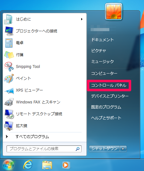 - スタートメニューの [コントロール パネル] を選択します。