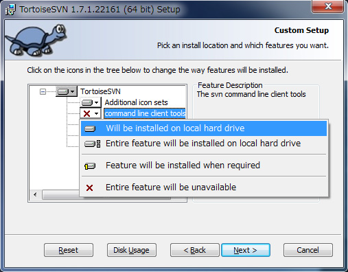 特にリポジトリのバックアップや移行をしたい時には「svnadmin hotcopy」や「svnadmin dump」コマンドを使わないといけないが、これは「コマンドラインクライアントをインストールする必要がある。