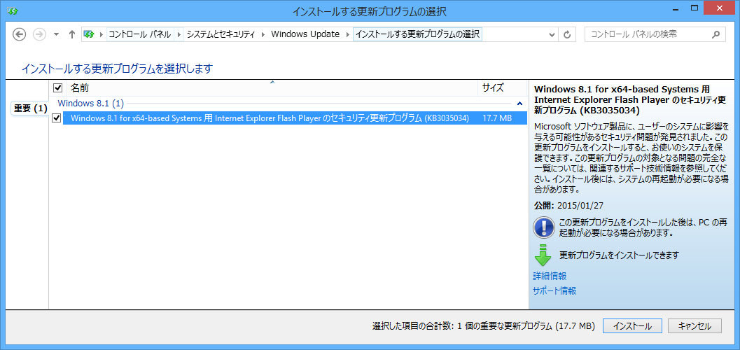 Windows8/8.1のInternet Explorerは、WindowsUpdateによってFlash Playerのアップデートが提供されます