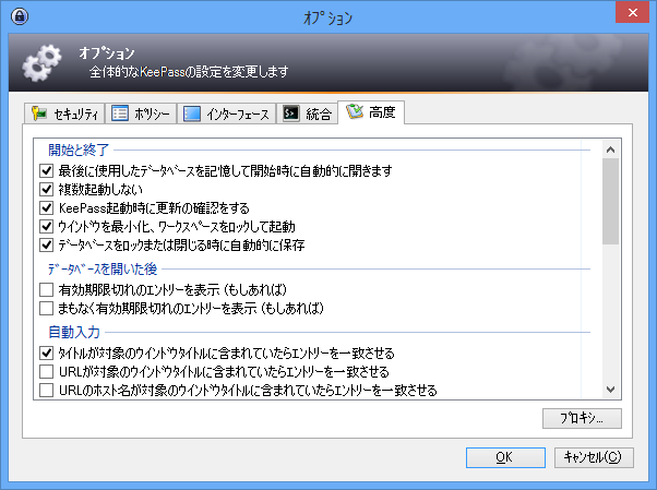 - [ウインドウズの開始時にKeePassを実行(現在ログオン中のユーザ)]にチェック