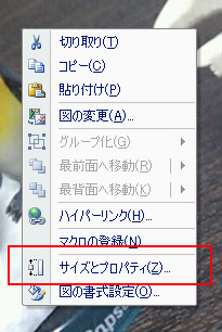 - 図を右クリック→[サイズとプロパティ]