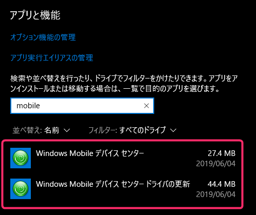 その場合は以下の手順で「Windows Mobile デバイス センター 6.1」を再インストールします